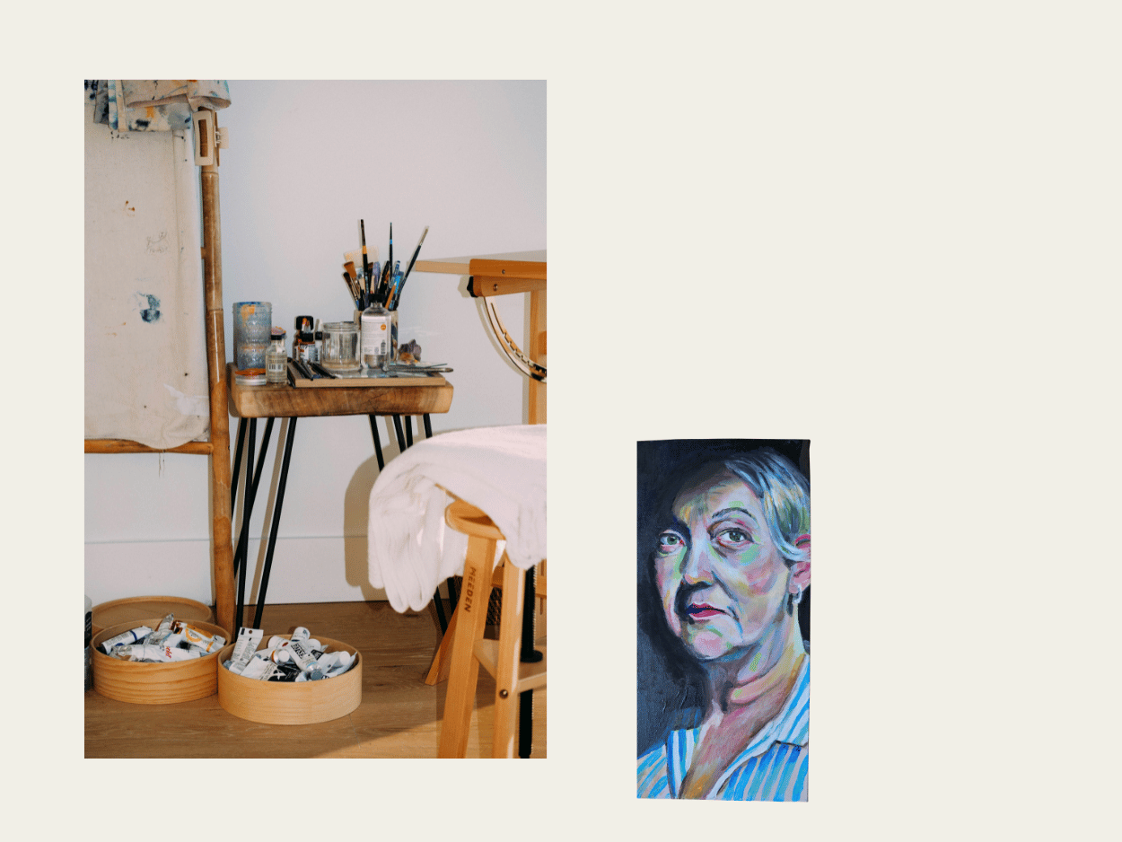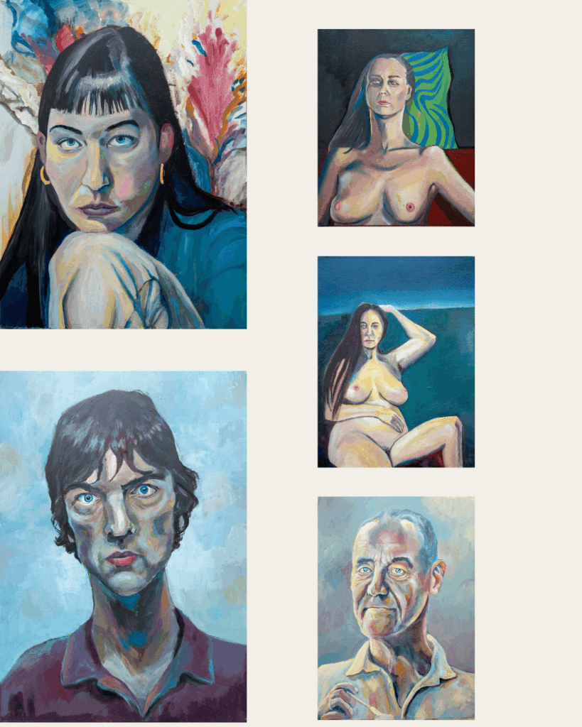 Inspiriert von Paul Wright, Alice Neel, Oskar Kokoschka, Ludwig Meidner und Xenia Hausner arbeite ich vor allem mit Porträt, Farbe und Körperlichkeit. Mich interessiert nicht das Abbild, sondern das Dazwischen: Spannung, Verletzlichkeit, Präsenz. Ich liebe das Experimentieren mit Farbe – Schichten, Reibung, Mut zum Unfertigen.